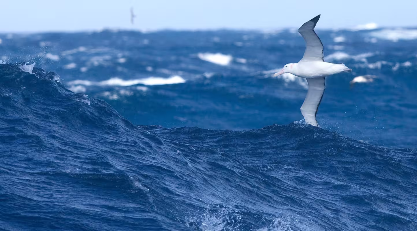 Grands voyageurs des mers, les albatros déploient leurs immenses ailes pour parcourir de longues distances. À l’agitation frénétique, ils privilégient des techniques de vol plané spéciales pour limiter l'emploi de leurs muscles et la dépense d'énergie.